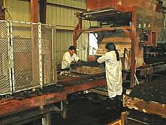 [1] Casing material being put on top of trays that have just been inoculated with spawn